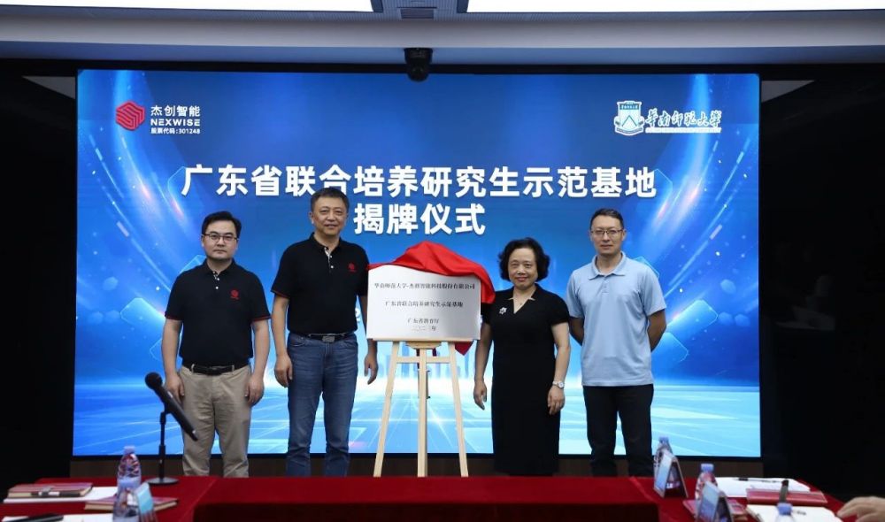 随后,hth.com华体会智能与华师举行了广东省研究生联合培养示范基地揭牌仪式,对hth.com华体会智能指导老师进行了受聘仪式,颁发证书。